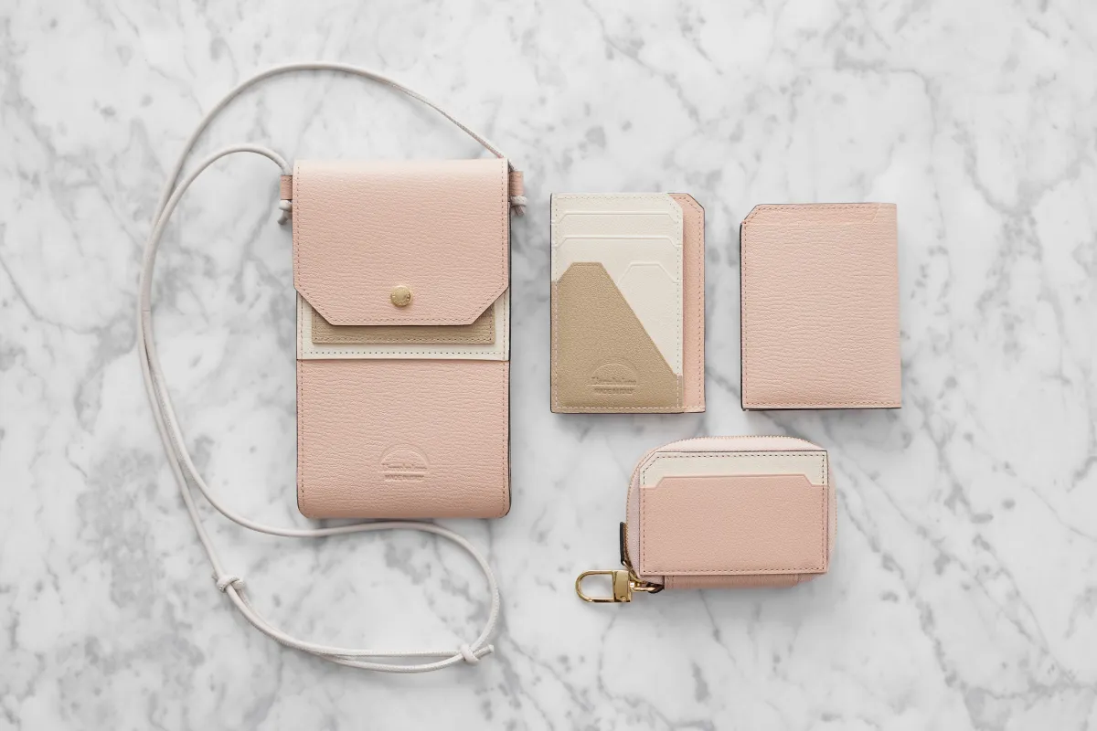 まず最初に紹介したいのは、ブランド不動の人気モデル、スマートカードウォレットです。このアイテムは、外側がNUDE PINKで仕上げられており、その魅力を余すところなく楽しめます。内部は、カードポケットの前面にベージュ(SAND)を施し、落ち着いた印象に。また、他の部分はオフホワイト(WHITE)が使われており、視認性と清潔感を両立しています。すでにシリーズを使用している方でも、新色によって新たな気持ちで使えるのではないでしょうか。商品ページは