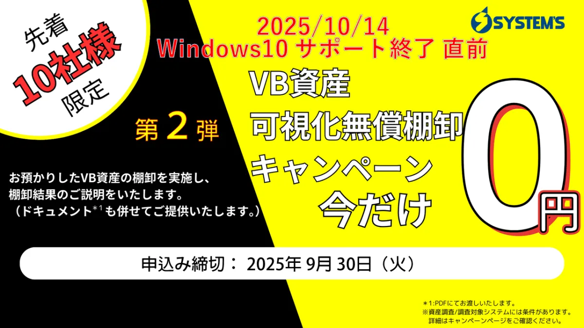 2025年10月14日のWindows10のサポート終了が近づく中、企業のDX推進に向けた取り組みが活発化しています。その中で、レガシーシステムの課題が多くの企業にとっての大きな障害となっている実情があります。特に、Visual Basic 6.0(VB6.0)で開発されたレガシーアプリケーションが多く残存しているため、これらの移行や刷新が急務とされています。そこで、株式会社システムズ(以下、システムズ)が「VB資産可視化無償棚卸キャンペーン」の第2弾を実施します。