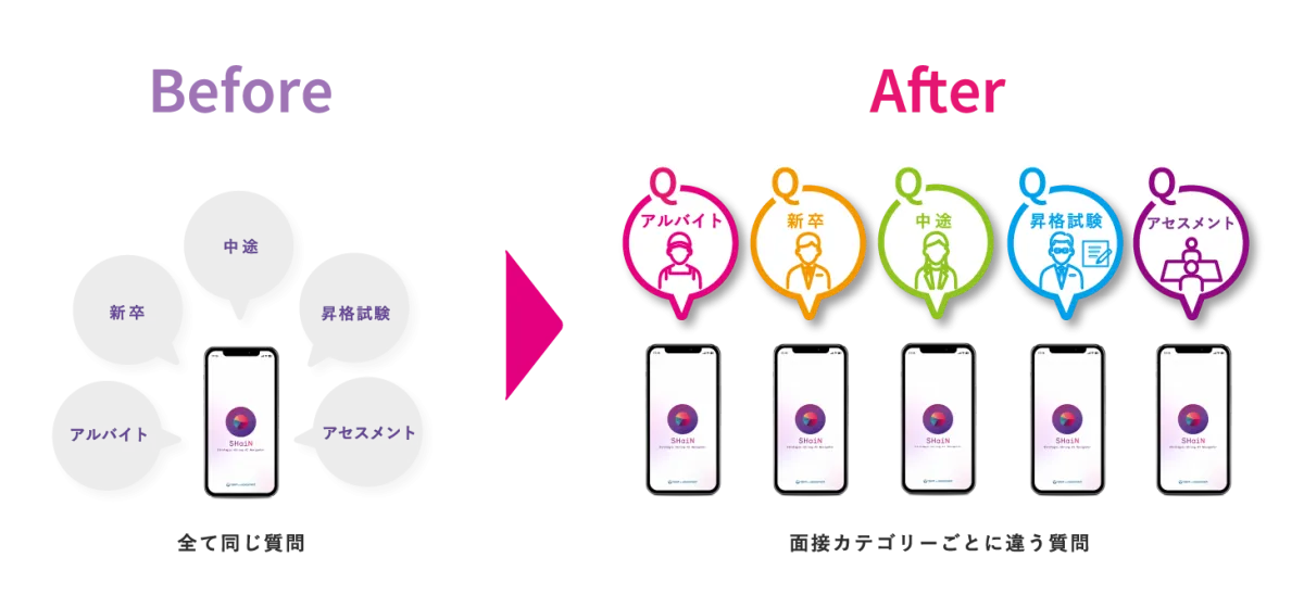 SHaiNのスタンダードプランでは、これまで新卒採用を中心に幅広い年齢層の受検者に対応してきました。しかし、導入企業の増加に伴い、中途採用や昇格試験など、多様なシーンでの活用が求められるようになってきました。そこで企業からの要望に応じて、対話型AIが提供する面接の質問内容を再構成し、中途採用に特化したサービスの提供をスタートする運びとなりました。