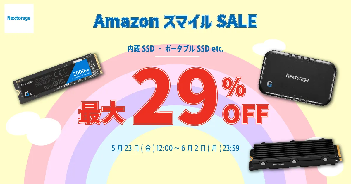 Nextorage株式会社は、最新のゲーミング製品をお求めやすく提供するため、2025年5月23日(金)から6月3日(月)までの期間に開催されるAmazonスマイルSALEに参加することを発表しました。このセールでは、さまざまなSSDやポータブル SSDが大幅に割引され、特にゲーミングに特化した製品が多数取り揃えられています。