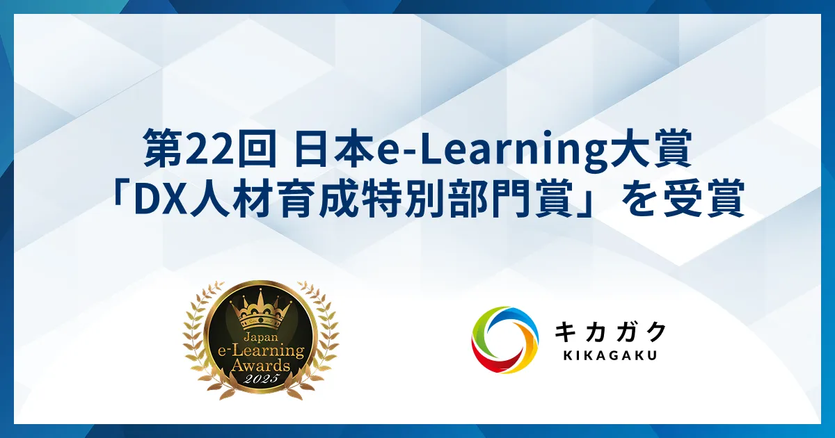 株式会社キカガクが提供するDX人材ラーニング・アセスメントプラットフォーム「キカガク for Business」が、一般社団法人日本オンライン教育産業協会が主催する「第22回 日本e-Learning大賞」において「DX人材育成特別部門賞」を受賞しました。この受賞は、過去においても「AI人材育成特別部門賞」や「企業DX人材育成特別部門賞」での受賞実績があり、今回で三度目となります。