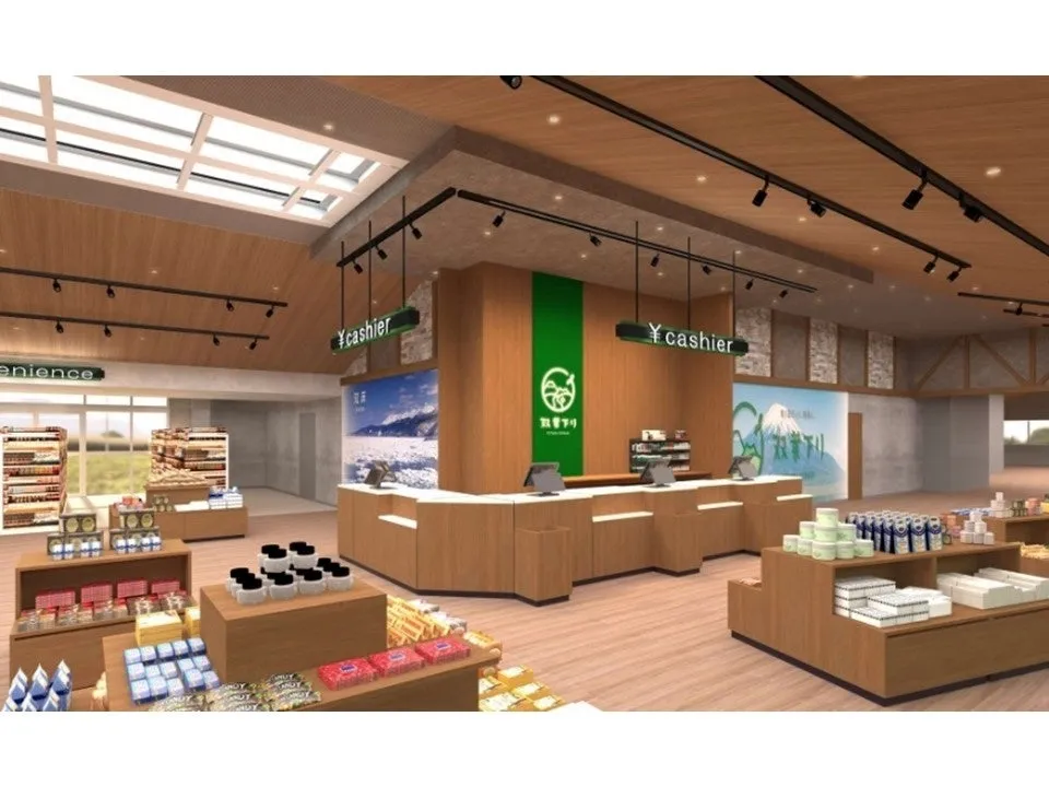 リニューアルの目玉は、ショッピングコーナーの24時間営業です。ここでは「フルーツ王国やまなし」として知られる県内の特産品や、富士山をイメージした「富士山カステラ」など、山梨の魅力満載のお土産が多数取り揃えられます。また、近隣地域からのバリエーション豊かな商品も展開され、県内外のお客様に人気の桔梗屋の「桔梗信玄餅」限定パッケージなども販売される予定です。