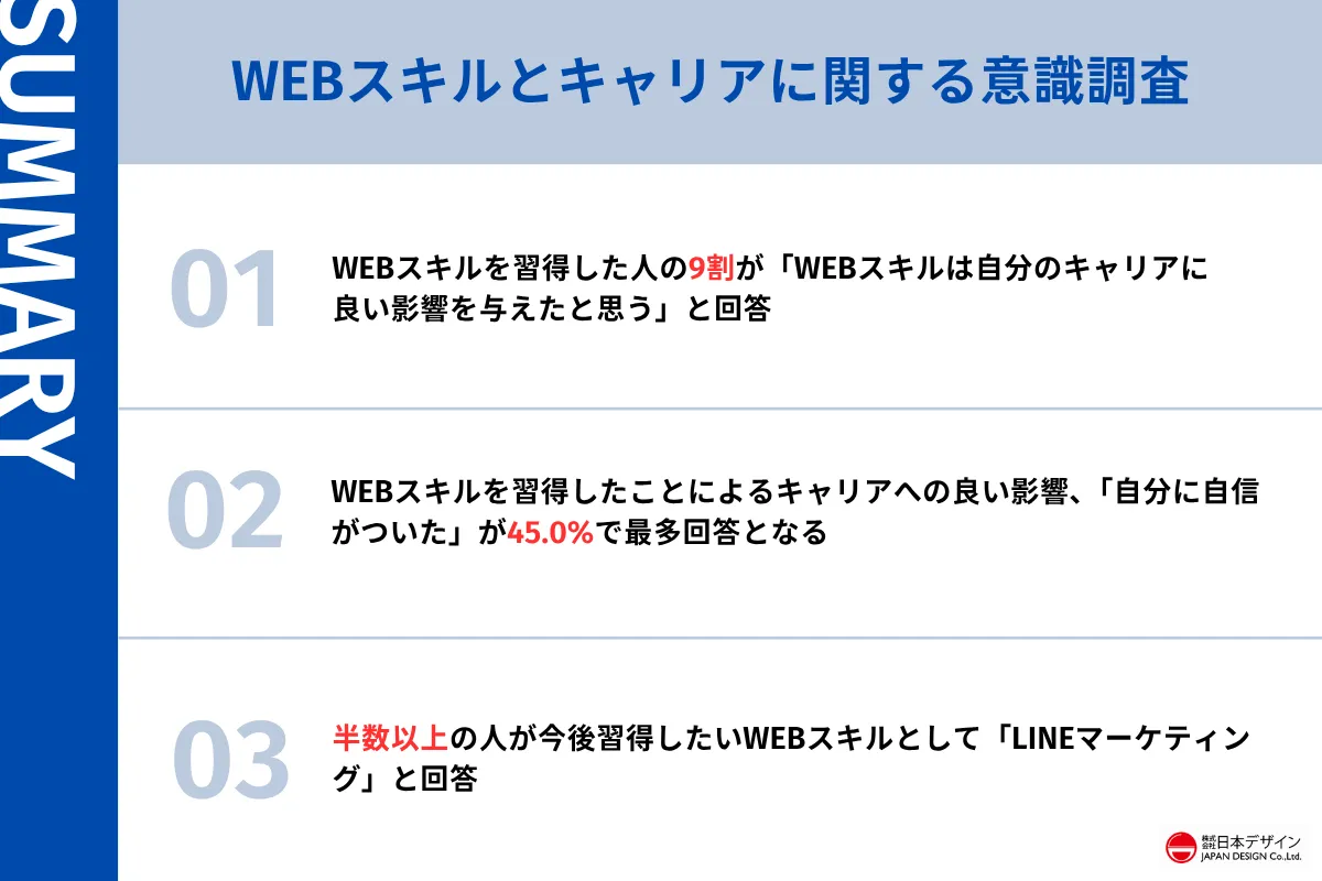 最近、株式会社日本デザインによって実施されたWEBスキルに関する意識調査が注目を集めています。この調査では、191名のWEBスキル習得者を対象に、スキルを学んだ理由、今後習得したいスキル、キャリアへの影響などが調べられました。
