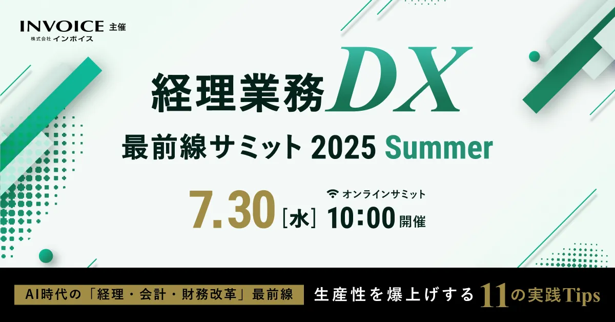 2025年7月30日(水)、株式会社インボイスが主催する「経理業務DX最前線サミット」が開催される。このカンファレンスでは、AIを活用した経理・会計・財務改革が注目され、その最新の動向についての情報が提供される。