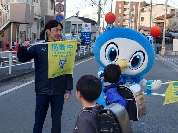 横浜FCは、地域に根差した活動を進める中で、持続可能な開発目標(SDGs)を意識し、"子どもが元気な街"の実現を目指しています。このテーマのもと、選手やスタッフが近隣の小学校での見守り活動や挨拶運動など、地域貢献に努めています。さらに、登下校時の子どもたちの安全を守るため、「交通安全横断旗」を制作し、小学校・幼稚園へ寄贈するプロジェクトを立ち上げました。