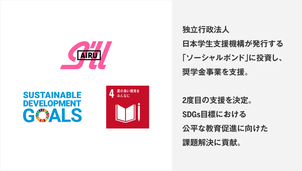 株式会社アイルが、独立行政法人日本学生支援機構が発行するソーシャルボンドに投資を行うことを発表しました。この投資は、奨学金事業の支援を通じた教育の機会均等化、さらに持続可能な開発目標(SDGs)の達成に向けた重要なステップとなります。