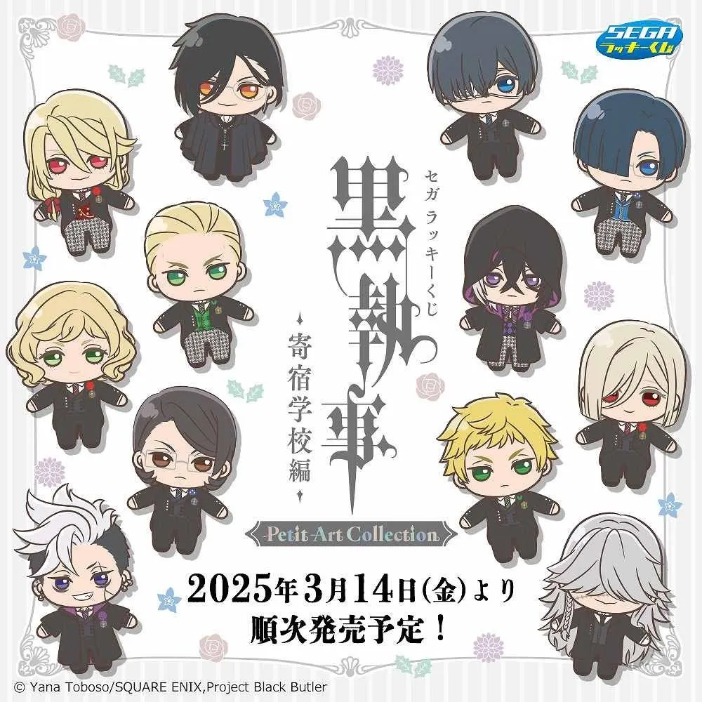 新たに登場するセガのラッキーくじ「黒執事 -寄宿学校編- Petit Art Collection」は、シックなデザインと使いやすいアイテムが揃い、ファンにはたまらない内容。ダブルラッキー賞も含めて、ぜひ挑戦してみてはいかがでしょうか。3月14日の発売が待ち遠しいですね。