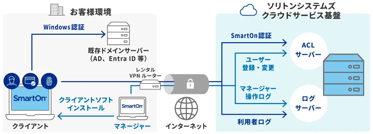 「SmartOn ID クラウド」の最大の利点の一つが、運用負担の軽減です。従来のオンプレミス型では、サーバーの構築や保守が必要でしたが、このクラウドサービスではその手間を大幅に圧縮。IT部門の運用工数を削減することが可能です。さらに、クラウド基盤に認証環境が集約されているため、高いセキュリティを保持しつつ、企業は迅速にサービスを導入することができます。