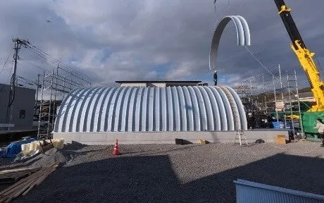 自由な発想から生まれる柱なしの大空間は、スチールアーチ建築の最大の特徴です。この新しい建築様式は、様々なビジネスニーズに応じた多彩な利用方法を提供します。最近では、高知県高知市にて四国初の施工が行われ、施工から約一か月で完成しました。