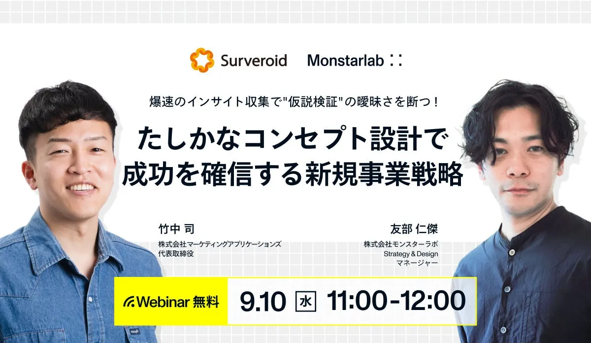 2025年9月10日、株式会社マーケティングアプリケーションズとモンスターラボジャパンが共催する無料オンラインセミナーが開催されます。このセミナーでは、「爆速のインサイト収集で“仮説検証”の曖昧さを断つ!」というテーマで、新規事業戦略の成功に不可欠な要素について詳しく解説します。