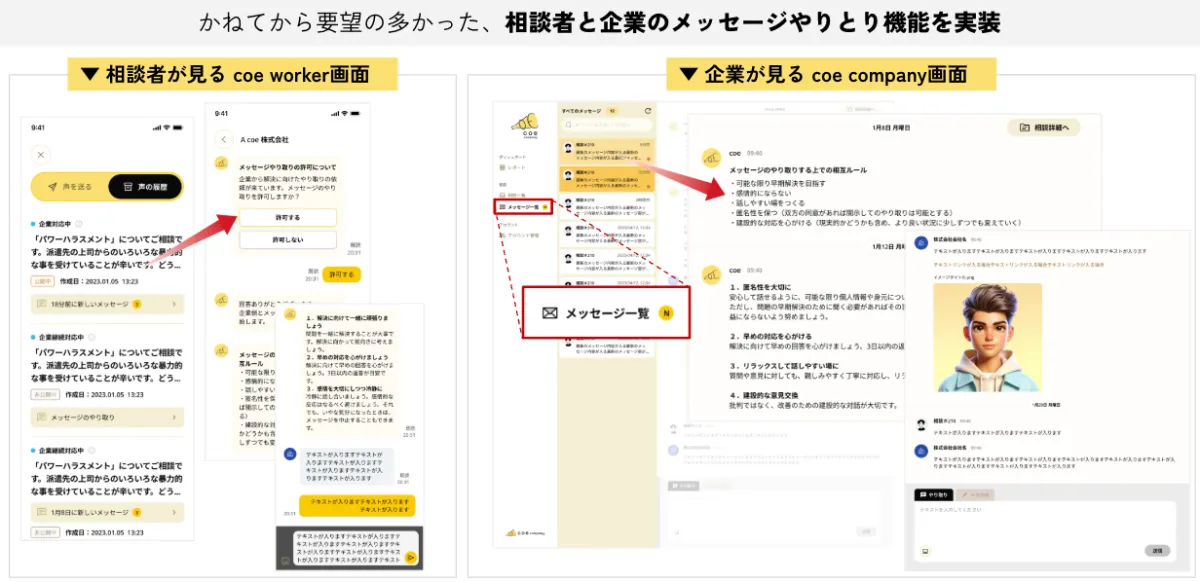 今回追加されたメッセージ機能では、労働者が匿名で問題を報告した後、企業と直接コミュニケーションを図ることができます。これにより、企業は従業員の声をお互いに把握しやすくなり、早期の問題解決が期待できるようになります。