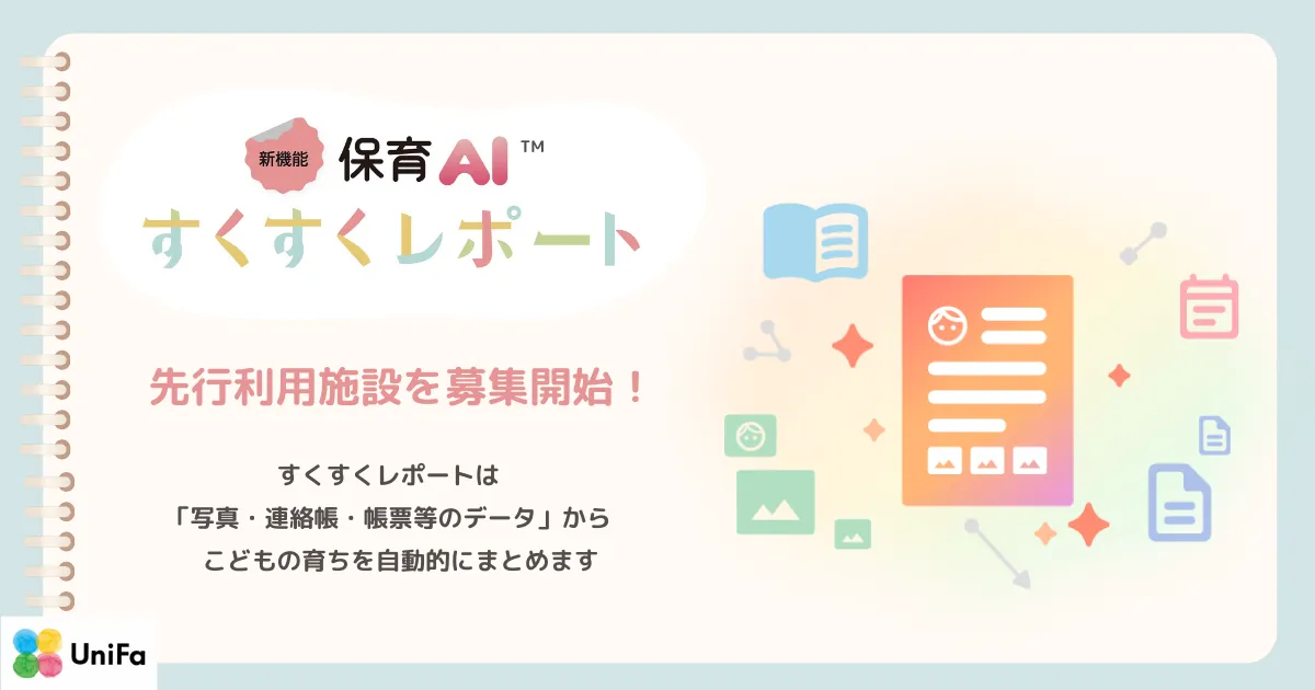ユニファ株式会社は、育児や保育の現場での業務負担を軽減するための新しいAIサービス「すくすくレポート™」を発表しました。これは、保育総合ICTサービス「ルクミー」に基づいて開発されたもので、日々の記録を自動で解析し、子どもの成長を見える化することを目的としています。今春にはβ版の提供が予定されており、先行利用施設の募集が2025年3月から開始されます。