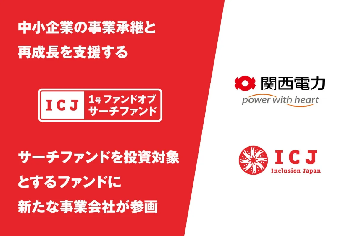 2023年10月、関西電力が「ICJ 1号ファンド オブ サーチファンド」に新たに出資したことが発表されました。このファンドは、インクルージョン・ジャパン株式会社(以下 ICJ)が組成したもので、サーチファンドを投資対象とする国内初の試みになります。サーチファンドとは、次世代の優れた経営者候補が投資家からの資金をもとに中小企業を買収し、独自に経営する仕組みです。