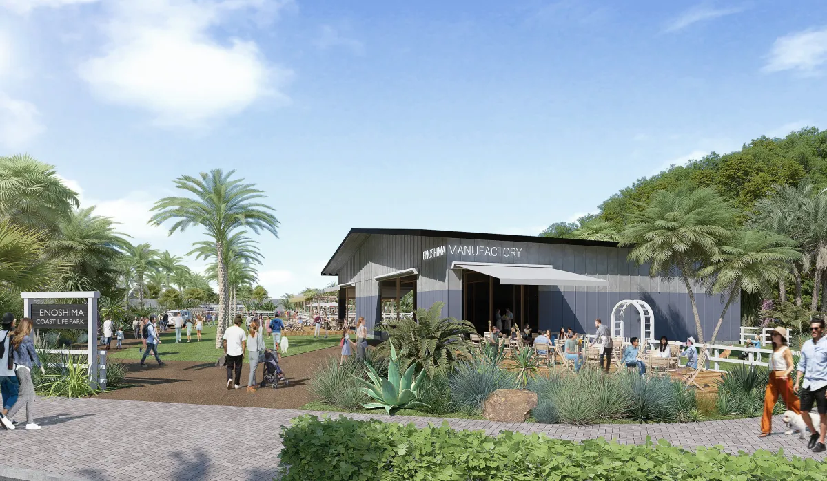 プロジェクトの名称は「(仮称)ENOSHIMA COAST LIFE PARK~江の島らしさを体感できるみんなの広場~」です。地元の新鮮な魚介や野菜を楽しめる飲食店を夜間まで営業し、友人や家族と一緒に料理を楽しむことができるスペースを用意します。また、海風を感じられる芝生広場でのマルシェも開催され、地域の人々と観光客の交流の場が生まれます。