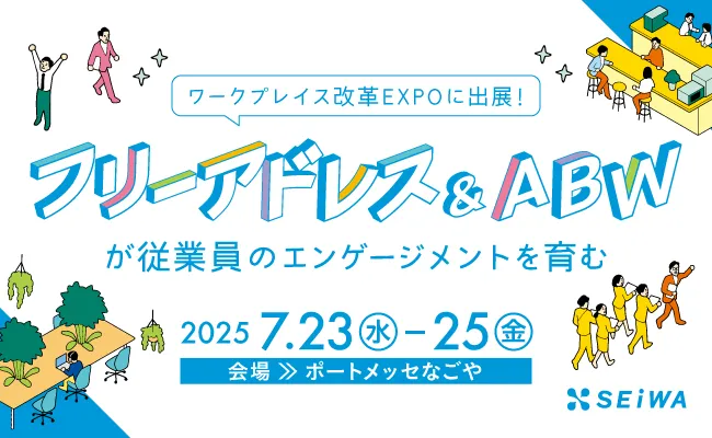 清和ビジネスは、ワークプレイス改革EXPOにおいて『フリーアドレス&ABW(Activity Based Working)が従業員のエンゲージメントを育む』というテーマで出展します。従業員の採用や定着を促進するためには、オフィス環境の改善が不可欠です。特に、フリーアドレスやABWの導入は、その鍵となるポイントです。