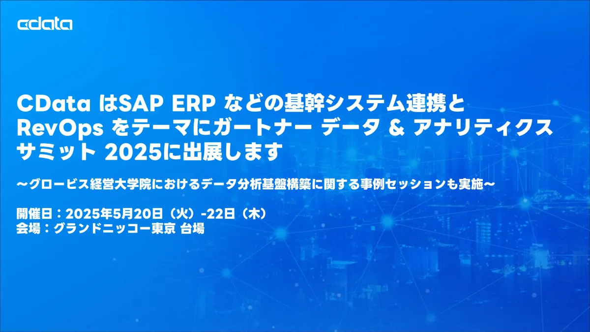 CData Software Japan合同会社は、2025年5月20日から22日に東京で開催される「ガートナー データ & アナリティクス サミット2025」に出展します。CDataは、SAP ERPなどの基幹システムとの連携やRevOps(レベニューオペレーション)に関するデータ分析基盤の構築をテーマにします。