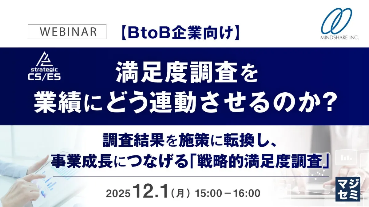 このウェビナーに参加することで、事業成長に寄与する満足度調査の仕組みを理解できるだけでなく、実際の成功事例を通じて具体的なステップを学べます。