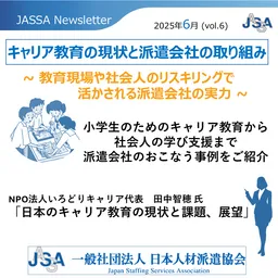 派遣業界が支えるキャリア教育が、今まさに注目を集めています。一般社団法人日本人材派遣協会が発行する「JASSAニュースレター」の第6号では、「キャリア教育の現状と派遣会社の取り組み」というテーマで、教育現場での具体的な事例や社会人に対するリスキリング支援について詳しく紹介しています。