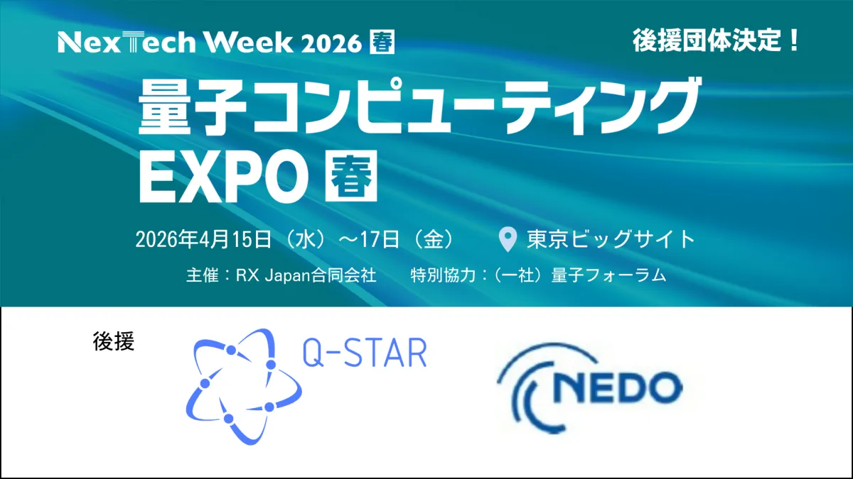 量子技術の進展を促進するための「第6回 量子コンピューティング EXPO」が2026年4月15日から17日にかけて東京ビッグサイトで開催されることが発表されました。本展示会は、国内における量子コンピュータの専門展として唯一のもので、一般社団法人量子技術による新産業創出協議会(通称Q-STAR)と国立研究開発法人新エネルギー・産業技術総合開発機構(通称NEDO)とが後援していることからも、その重要性が伺えます。