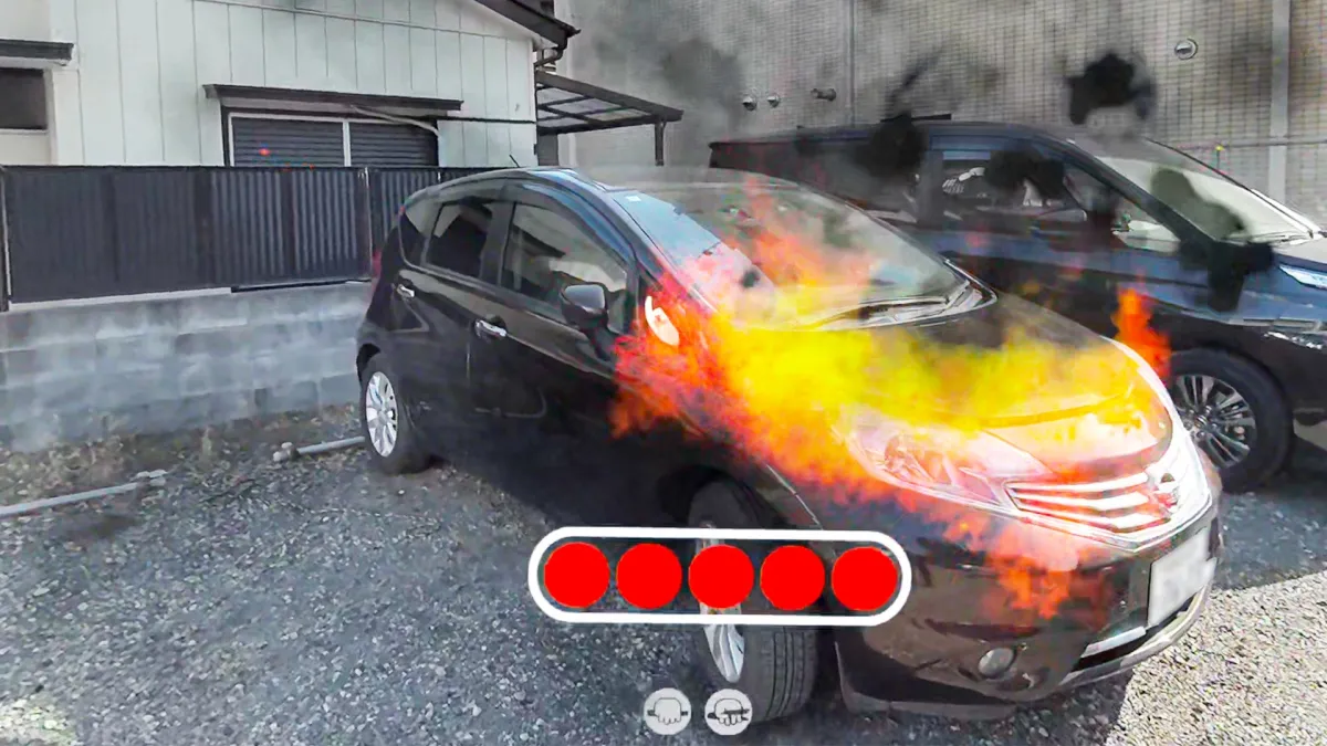 「消火器トレーニングMR」は、Meta Quest 3/3Sを装着することで、リアルな環境に仮想火災が発生します。これにより、より臨場感のある消火訓練が実現。利用者は、発火地点や延焼範囲を自在に設定でき、「向かいの同僚の机に置いたモバイルバッテリーから出火」など、実際に起こりうるシチュエーションを再現できます。また、このシステムはスタンドアロン型であるため、ケーブルやPCに接続することなく、自由に訓練を行うことができます。訓練では、火災を発見し消火器を取りに行き、実際に噴射するまでの流れを実践的に学ぶことができるのです。