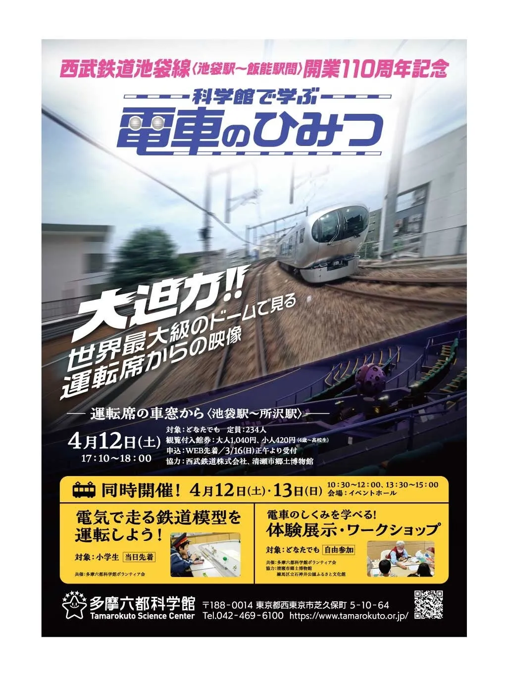 このイベントでは、館内イベントホールにおいて、鉄道模型の運転体験や電車のしくみを学べる体験展示、ワークショップが用意されており、鉄道の魅力を存分に楽しむことができる機会となる。特に、西武鉄道の協力によって特別な映像が幕を開け、普段見ることのできない運転席からの景色が巨大なドームスクリーンに映し出される予定である。