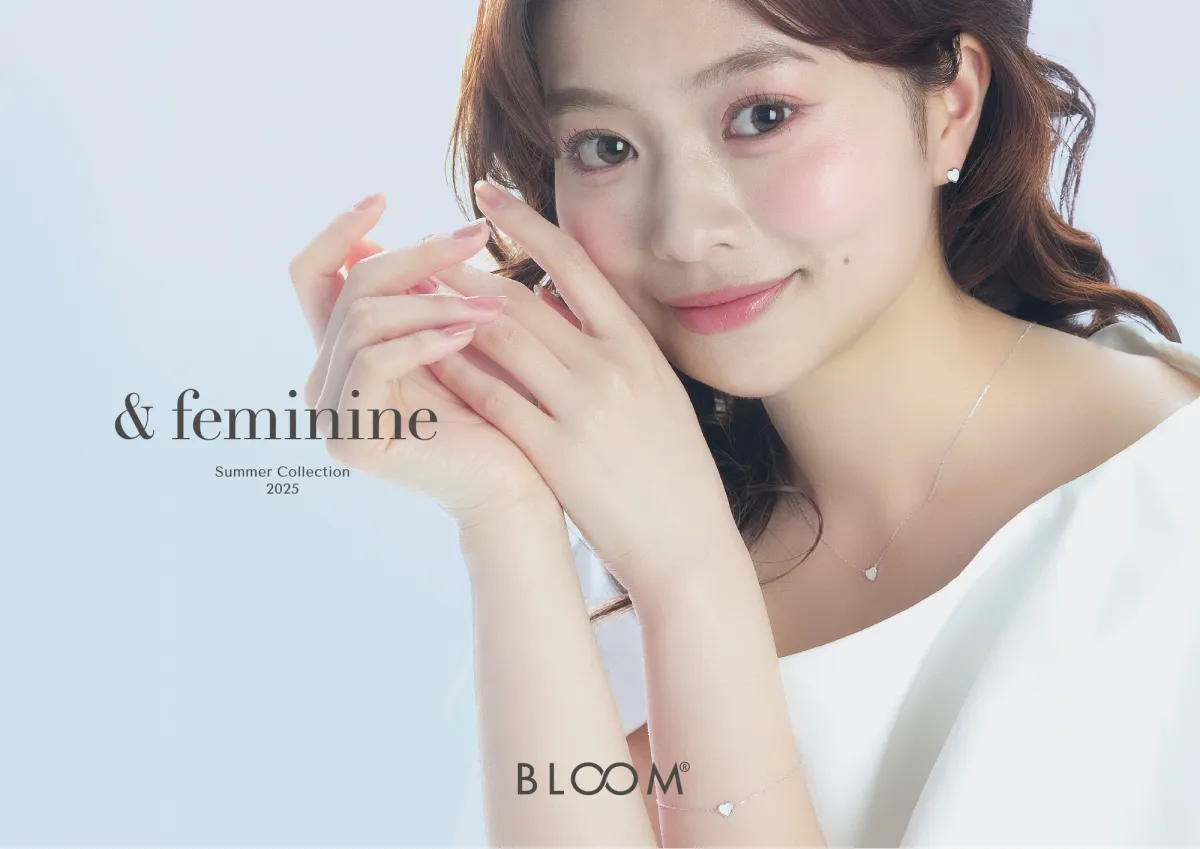 この夏のコレクションのテーマは“&feminine”。可愛らしさだけでは満足できない大人の女性に向けて、自由でありながらも愛らしさを感じさせるデザインを追求しました。新作ジュエリーは一歩先を行く存在感を持ち、夏のコーディネートに寄り添います。BLOOMのジュエリーは、ただのアクセサリーではなく、身に着けることで自信を与えてくれるパートナーとなります。