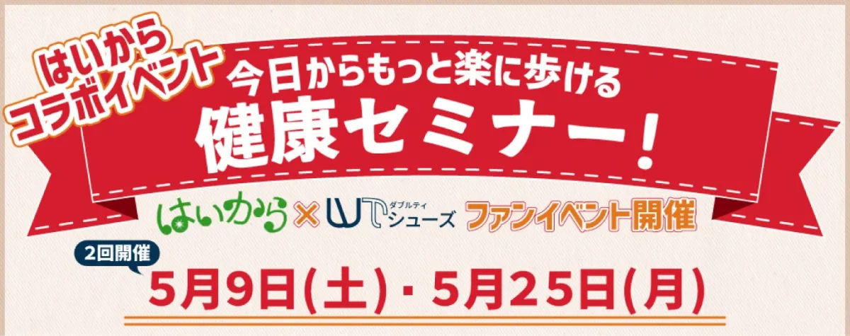 入場は無料で、セミナー終了後にはWTシューズの試着会も実施します。この機会にぜひ自身の足を癒す靴を見つけてみてはいかがでしょうか。