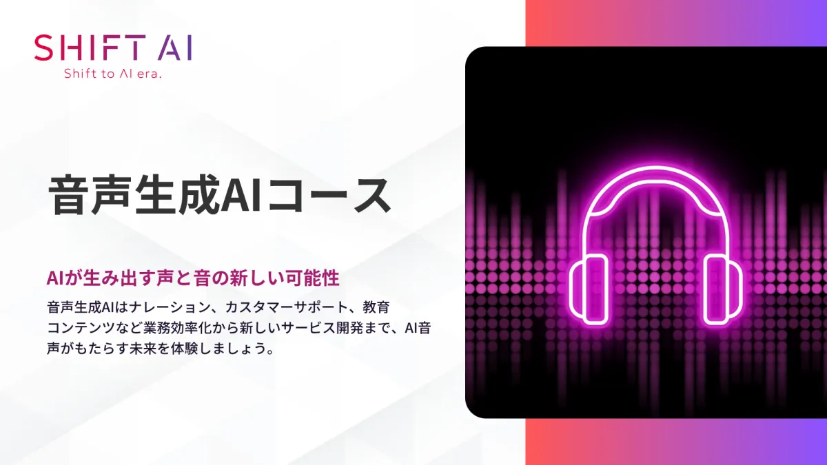 業界の変革が進む中、AIによる音声生成技術は急速に普及し、さまざまなビジネスシーンでの活用が進んでいます。そんな時代の流れを受けて、株式会社SHIFT AIは新たに「音声生成AIコース」の提供を発表しました。このコースは、2026年1月9日から法人向けのリスキリングサービス「SHIFT AI for Biz」のeラーニングプラットフォームにて受講可能です。