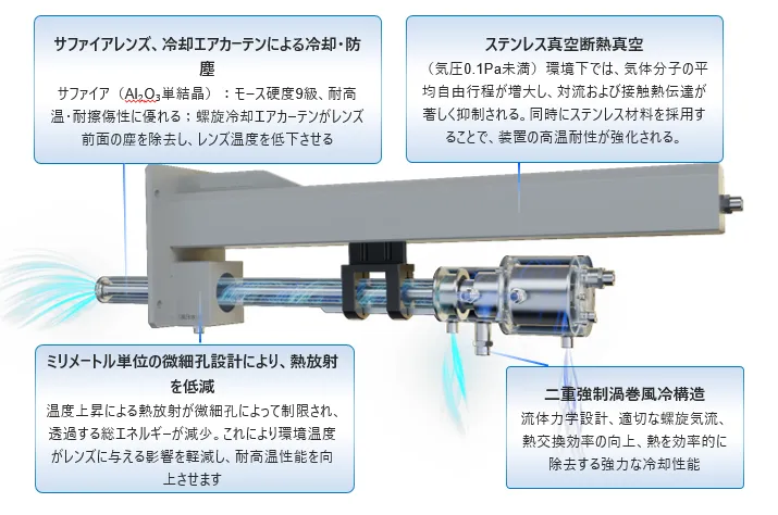 - - 二重ボルテックス空冷構造 :炉内の極限環境でも内部機器をしっかりと保護。