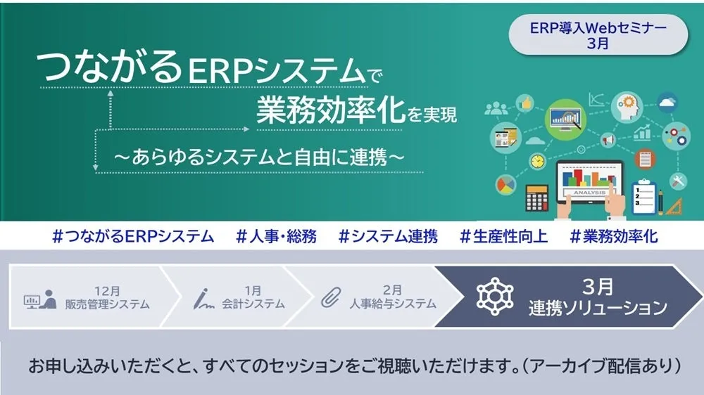 日本電気株式会社(NEC)は、2025年3月14日(金)に、「あらゆるシステムと自由に連携するERP」をテーマにしたオンラインウェビナーを開催します。本イベントでは、NECの新しいERPシステム「EXPLANNER/Ax」を紹介し、業務効率化の実現に向けた具体的な知見を提供します。