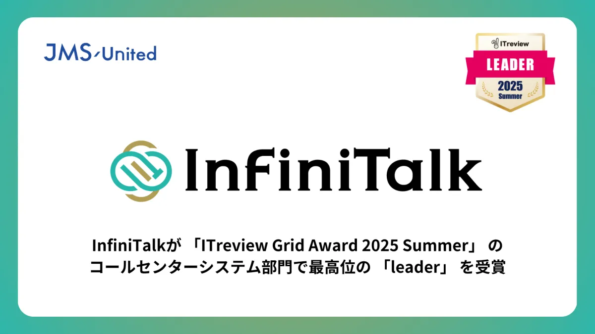 ジェイエムエス・ユナイテッド株式会社が提供するクラウド型コールセンターシステム『InfiniTalk(インフィニトーク)』が、アイティクラウド株式会社運営のレビュープラットフォーム『ITreview』において、コールセンターシステム部門の最高位である「Leader」を受賞しました。この受賞は、約14万件におよぶリアルユーザーのレビューを基にしたもので、顧客満足度と製品の認知度が高く評価された結果です。
