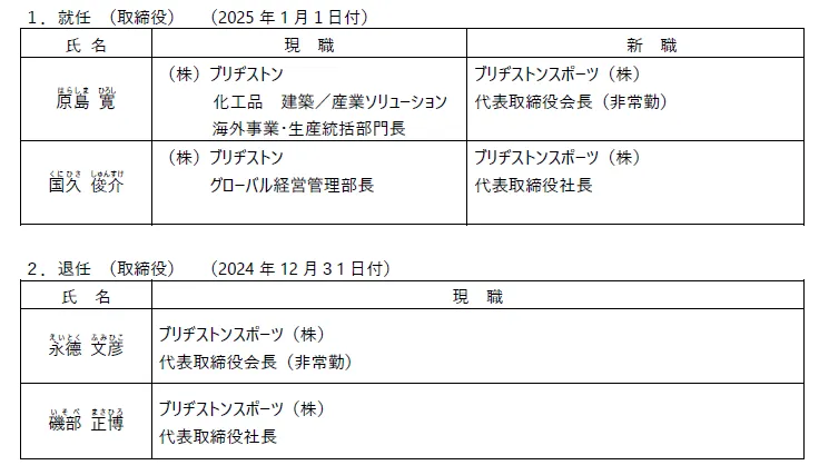 新しい役員陣には、豊富な経験と専門知識を持つメンバーが揃っており、各自が異なる分野でのリーダーシップを発揮することが期待されています。これにより、ブリヂストンスポーツは市場での競争力を一層強化し、より革新的なプロダクトやサービスを提供していくことでしょう。