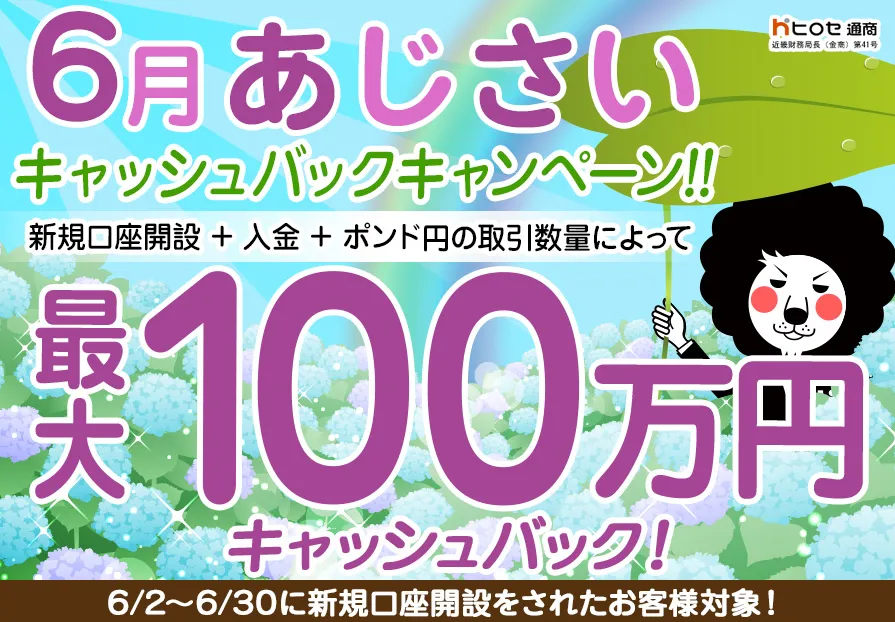 ヒロセ通商株式会社が、2025年6月2日より新たなキャンペーンを開始します。対象は新規口座を開設したお客様で、ポンド円の取引量に応じて最大100万円のキャッシュバックが受けられる大規模なプロモーションです。このキャンペーンは、FX取引を始めたいと考える初心者から、さらなる取引の幅を広げたい経験者まで、幅広い層にとって利便性の高い内容となっています。