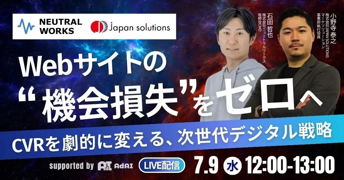株式会社ニュートラルワークスと株式会社JAPAN SOLUTIONSが共催するウェビナーでは、そんな課題を解決する"次世代デジタル戦略"について具体例を交えてお話しします。このセミナーでは、Webマーケティングに特化した知識だけでなく、顧客とのエンゲージメントを高めるためのLINE活用法など、多岐にわたる内容が取り扱われます。