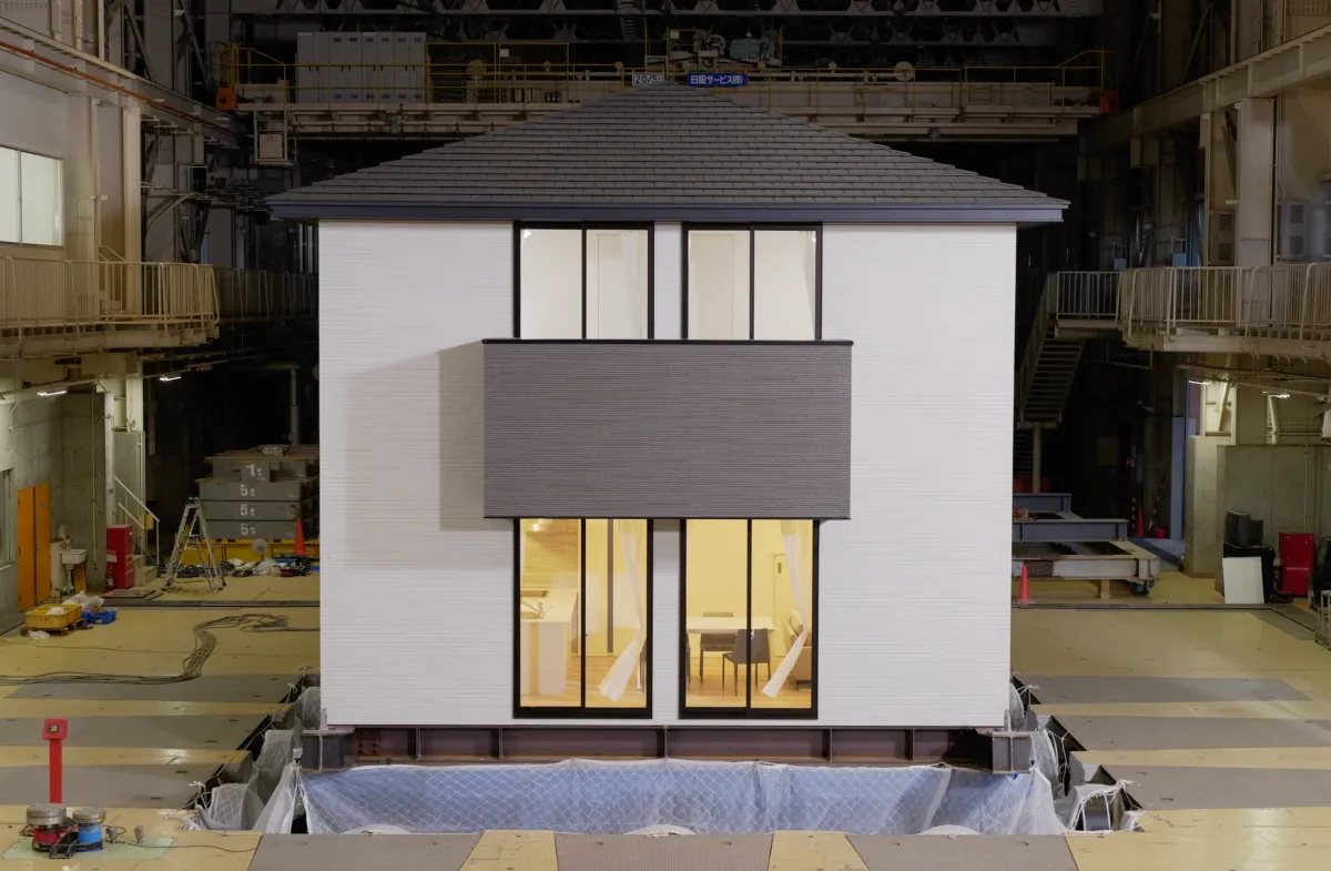 本試験では、耐震等級3を満たす強固な構造の木造住宅が対象でした。具体的には、制震ダンパーを使うことで揺れの抑制を図り、実際の住宅規模に近い条件で振動試験を行いました。これにより、大地震時の建物の挙動や損傷の有無を詳細に分析することが可能となりました。