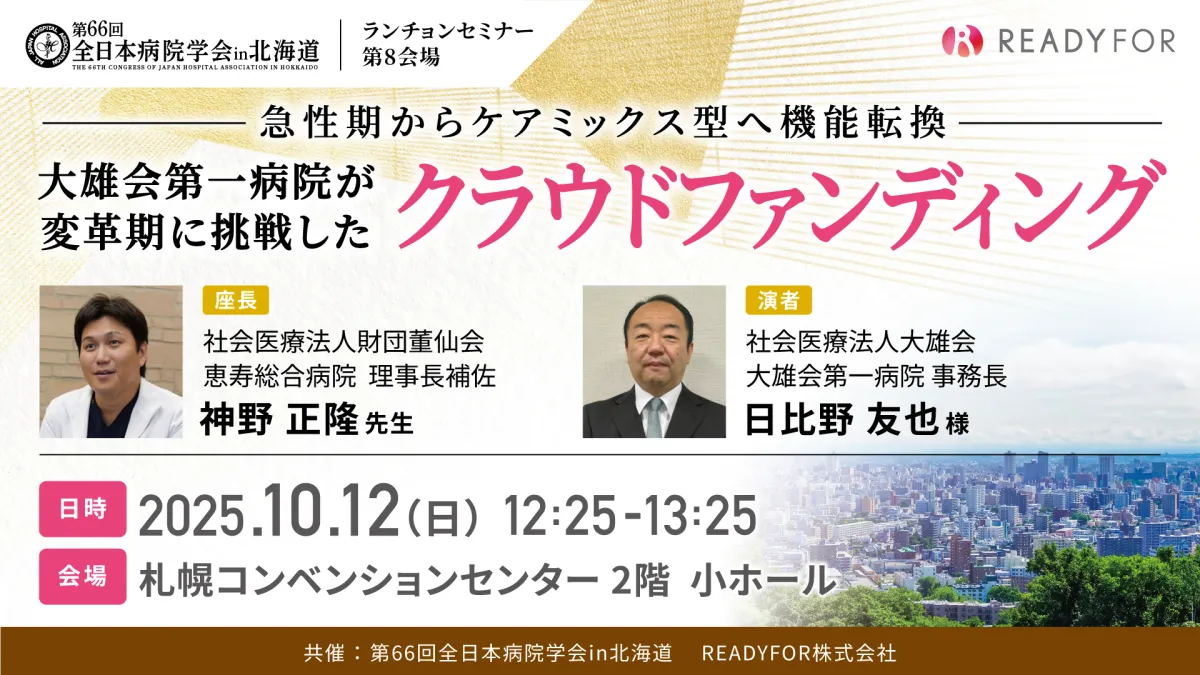 2025年10月12日、札幌コンベンションセンターにて、第66回全日本病院学会が開催されます。その中で、特に注目されているのが、ランチョンセミナー「急性期からケアミックス型へ機能転換 大雄会第一病院が変革期に挑戦したクラウドファンディング」です。このセミナーでは、大雄会第一病院が直面している医療体制の変革について詳しく議論される予定です。