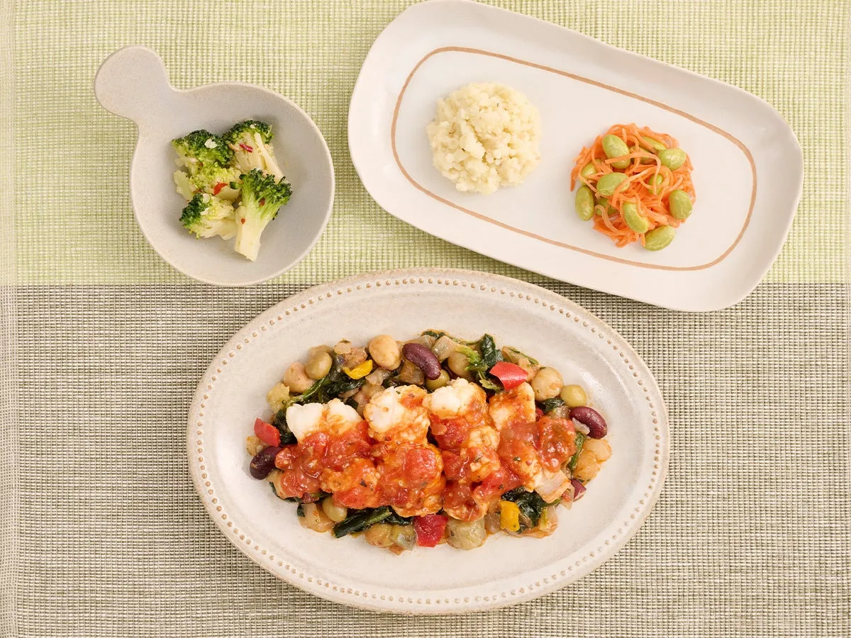 副菜も充実しており、ガーリック風味のブロッコリーのアヒージョや、クリーミーなマッシュポテト、さっぱりとした柑橘ドレッシングのキャロットラペなどが添えられています。これにより、メインディッシュとの相性も抜群で、栄養バランスも考慮されています。具体的な栄養成分は、カロリー434kcal、たんぱく質9.7g、糖質14.5g、脂質35.6g、塩分2.0gと、健康志向の方にも嬉しい内容になっています。
