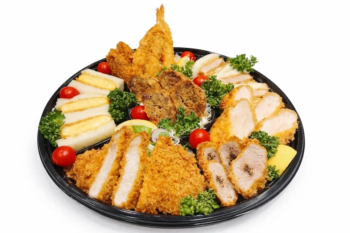 「とんかつ白山」の特製メニューには、全10種類以上の豊富な選択肢があります。例えば、豪華な「とんかつオードブル」やサンドイッチオードブル、さらには様々なお弁当やかつサンドも含まれた多彩なラインナップが魅力。オードブルは5,980円、かつサンドやお弁当は780円からと、お手頃価格で提供しています。
