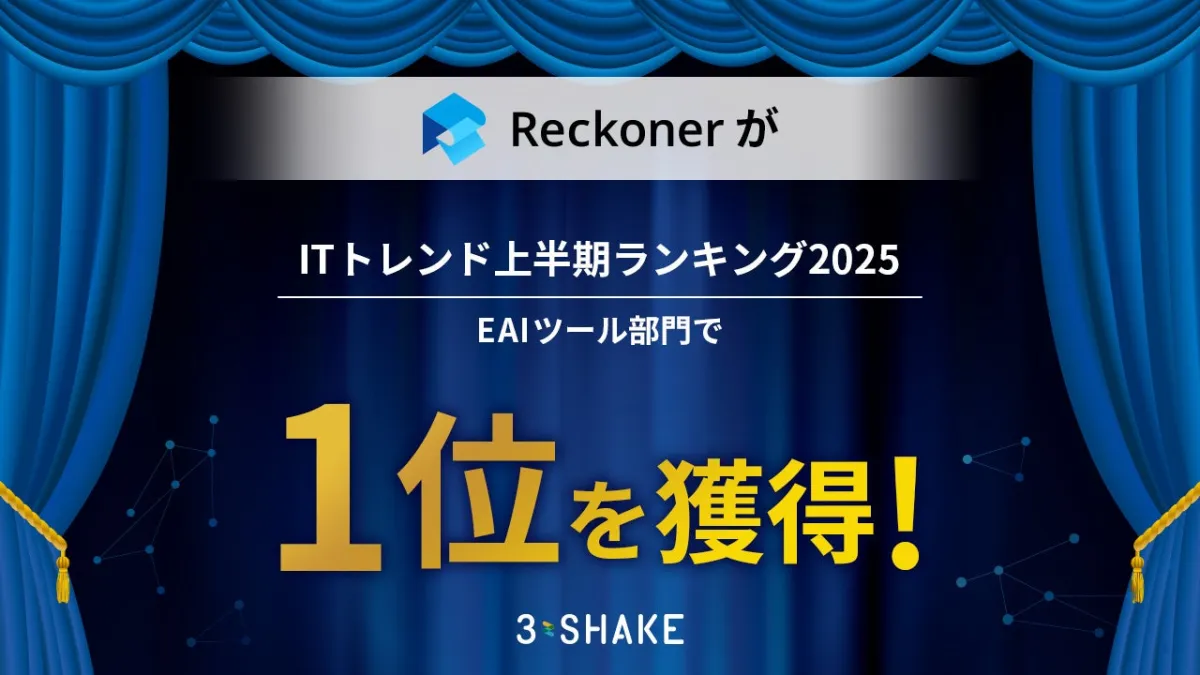 株式会社スリーシェイクが提供するクラウド型データ連携ツール「Reckoner」が、IT製品の比較・資料請求サイト「ITトレンド」の「ITトレンド上半期ランキング2025」において、EAIツール部門で見事第1位を獲得しました。このランキングは2025年1月から5月末までの期間における資料請求数を元に、ユーザーからの支持が最も高い製品を選ぶものであり、「Reckoner」の優れた機能が反映された結果と言えるでしょう。