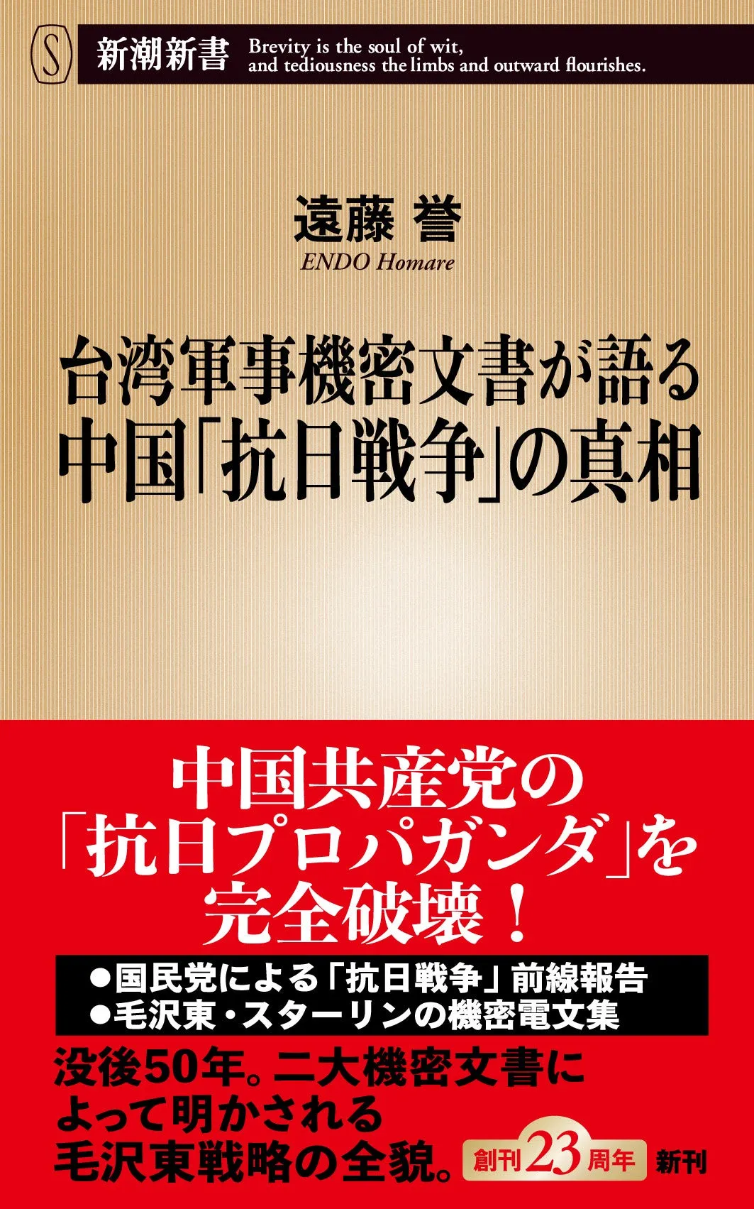 株式会社新潮社から、遠藤誉氏による新たな書籍が4月17日に発売されました。タイトルは『台湾軍事機密文書が語る中国「抗日戦争」の真相』。この本は、台湾国史館が所蔵する抗日戦争当時の手書きの軍事機密電文が機密解除されたことを背景に、その内容を詳述しています。