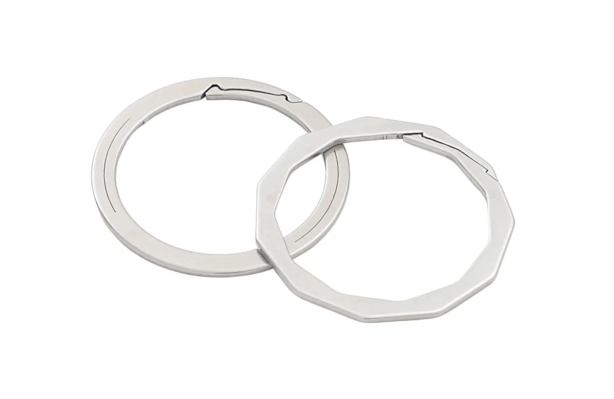 KEYROUNDは、薄さわずか1.1mmで、重ならず噛み合うデザインが特長です。反対方向に押すことで生まれる隙間により、鍵の取り付けや取り外しが驚くほどスムーズに行えます。また、波形デザインの合わせ目は圧力を分散させるため、横からの力に対しても強く、簡単には変形しない頑丈さを誇ります。使用されている素材は、バネ性と強度を兼ね備えたステンレス鋼SUS301。さらに、ストーンウォッシュ加工によって滑らかなマット感を実現し、新品でも手にしっくりと馴染む風合いが魅力です。