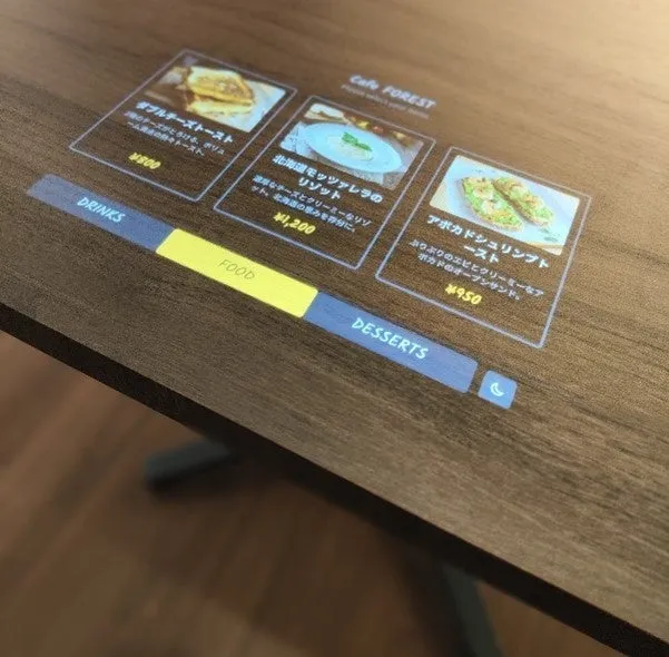 「ダブルビュー®フィルム」は、インテリアデザインの可能性を広げるものです。例えば、このフィルムをテーブルに組み込むことで、飲食店での注文のためのタブレットが不要になります。また、間接照明に代わる光源を作り出すことも可能です。