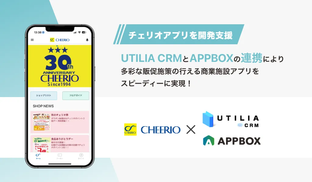 アプリの開発には、日本リテイルシステムが提供する商業施設向け顧客管理システム「UTILIA CRM」と、アイリッジのアプリビジネスプラットフォーム「APPBOX」を活用しました。この連携により、アプリ会員証、ポイントシステム、クーポンなどが迅速に実現されました。
