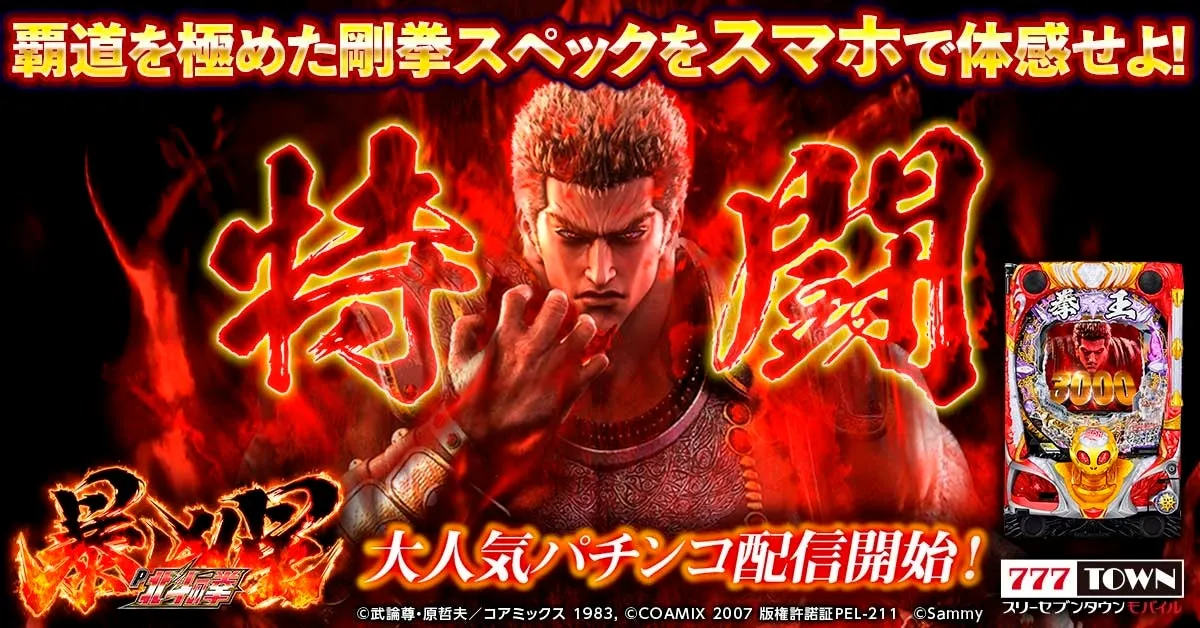 スマートフォン向けのパチンコ・パチスロゲーム「777TOWN mobile」が、2025年8月19日より新作「P北斗の拳 暴凶星」の配信を開始します。このアプリは、サミー株式会社の人気コンテンツ「北斗の拳」シリーズを基にしたもので、高い出玉性能が魅力となっています。