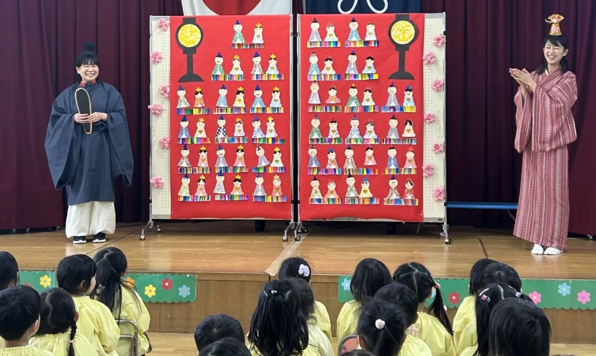 さらに、教員たちが扮するお雛様とお内裏様の登場は、会を一層盛り上げます。園児たちは彼らと一緒になって歌ったり、踊ったりすることで、日本の伝統行事に対する親しみを育むことができます。このような体験を通じて、子どもたちの日本文化への理解と関心が一層高まり、今後の成長に役立つことでしょう。