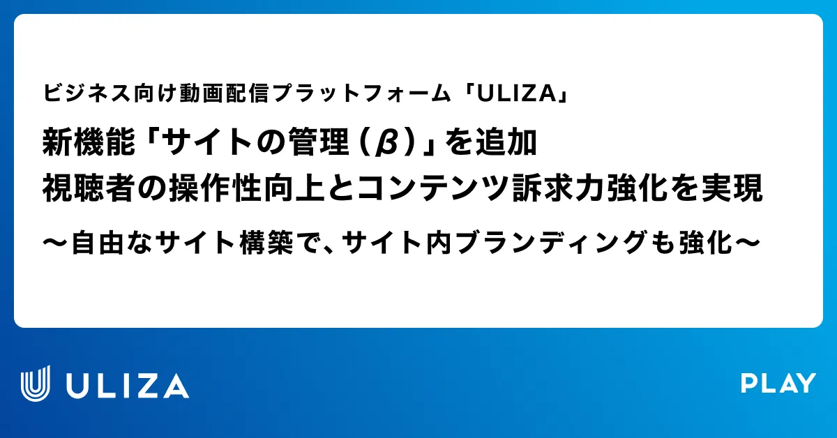 株式会社PLAYが提供する法人向け動画配信プラットフォーム「ULIZA(ウリザ)」に、新機能「サイトの管理(β)」が追加されました。これは、視聴者の操作性を向上させることを目的としています。この新機能は、既存の「配信サイト作成機能」の拡充版として登場し、利用者にとってより使いやすい環境を提供することを目指しています。