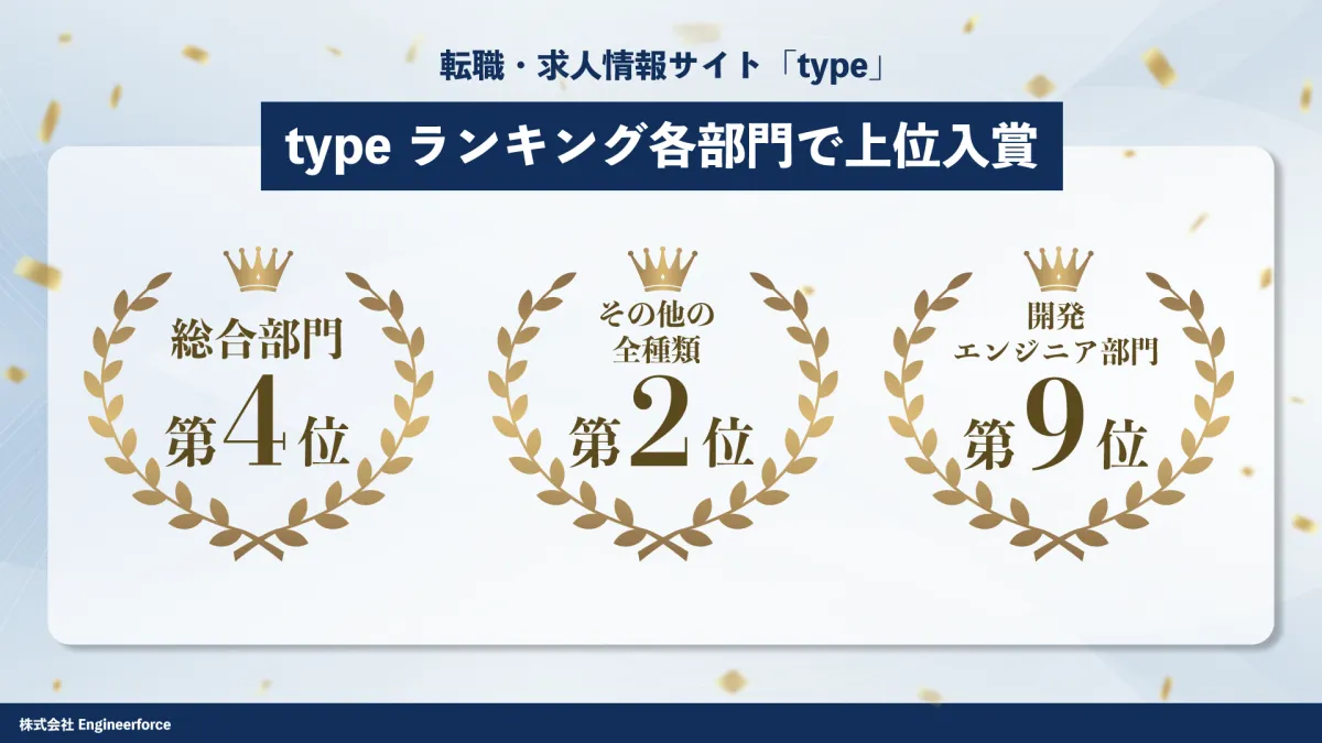 株式会社Engineerforce(本社:東京都渋谷区、代表取締役:飯田 佳明)は、転職情報サイト「Type」において企業ランキングで素晴らしい実績を収めました。特に、その他の全職種ランキングで2位、総合ランキングで4位、開発エンジニア部門で9位に選ばれたことが大きな話題となっています。これにより、Engineerforceが持つ特異な魅力や働きやすさが、多くの求職者から注目を集めています。