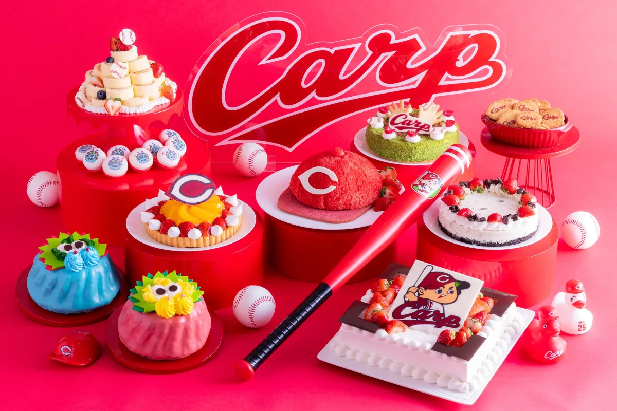 例えば、「あこがれのCキャップズムスタメモリーケーキ」は、カープのロゴが施された真っ赤なキャップを模した見た目が印象的。ふわふわのスポンジと苺を使った王道のショートケーキもあり、どれも思わず写真に収めたくなるような美しさです。