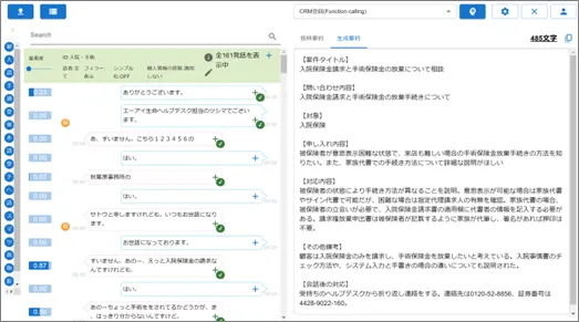「QuickSummary2.0」は、コンタクトセンター向けに設計された生成要約サービスで、使いやすいユーザーインターフェース(UI)が特徴です。オペレータは通話の内容を簡潔に要約することができ、その要約結果を自由に選択して表示することが可能です。さらに、利用料金も従量制および固定料金から選ぶことができるため、コストを抑えて利用できるのも魅力の一つです。また、他社の音声認識システムやCRMとの連携も可能で、業務の効率化が図れます。