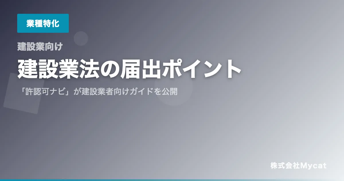 建設業者の皆さんに朗報です。株式会社Mycatは、許認可検索サービス「許認可ナビ」にて、建設業向けの届出ガイドを新たに公開しました。このガイドは、膨大な数の業者が存在する建設業界において、特に許認可の取得や維持に苦労する事業者のために設計されています。
